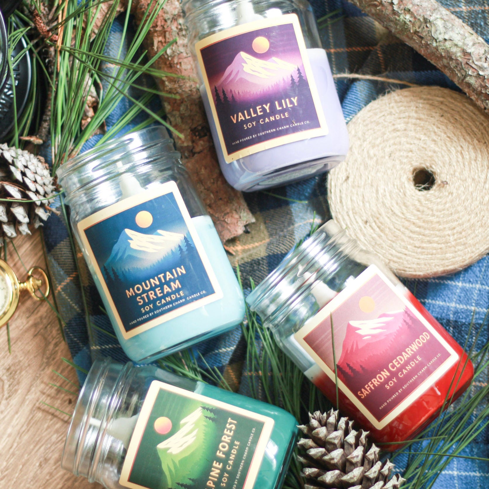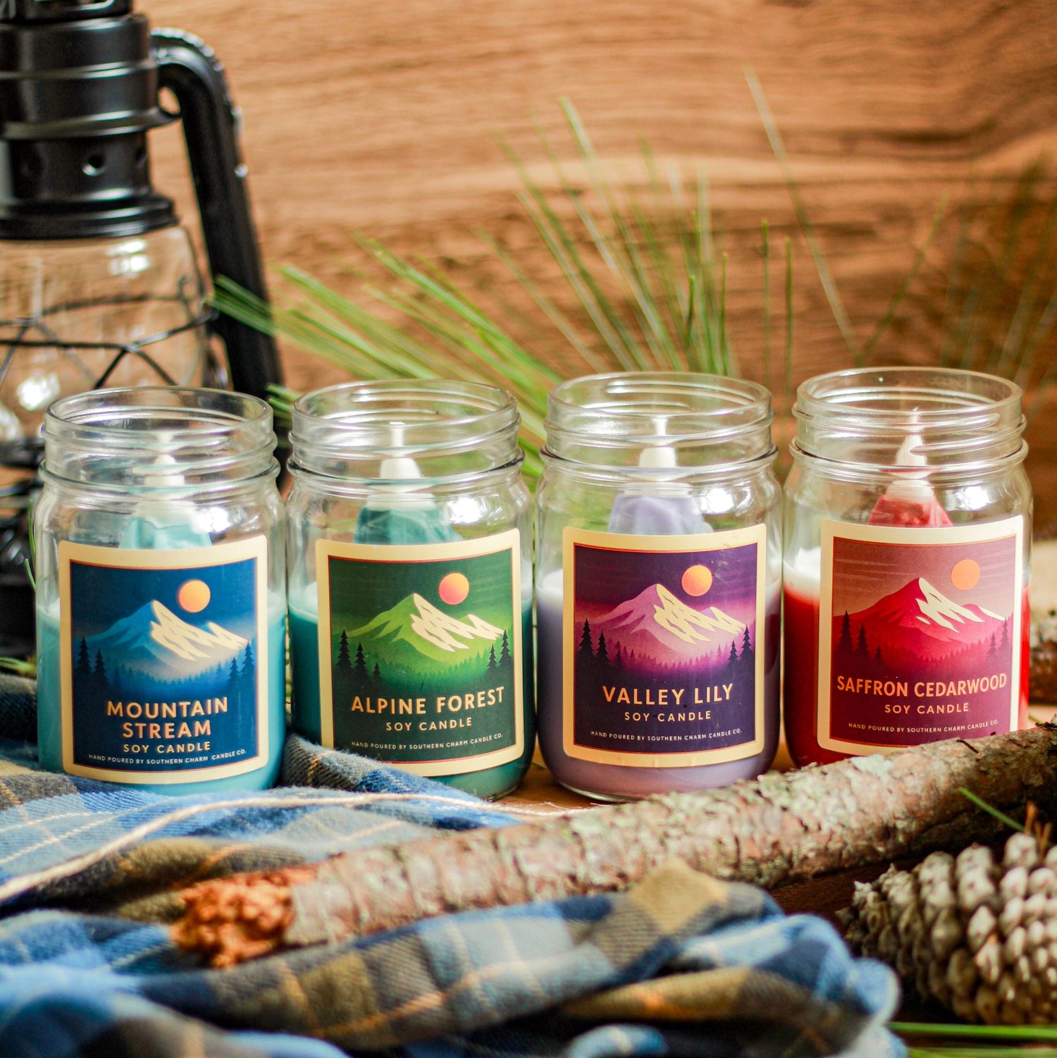 Shop the Mountain CollectionBring the outdoors in with this new line of hand poured and handcrafted soy wax candles. Topped with mountain embeds, The Mountain Collection is inspired by crisp air, flowing streams, and rugged Southern peaks for a clean and refreshing burn.